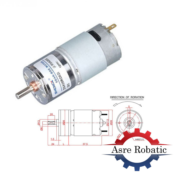 موتور DC گیربکسدار ZGA28 یک موتورگیربکس DC به همراه یک گیربکس می باشد که با هدف کاهش سرعت و افزایش قدرت و گشتاور به کار گرفته می شود. این کار توسط چرخ دنده های گیربکس که داخل جعبه دنده هستند صورت می گیرد(موتوررباتیک).